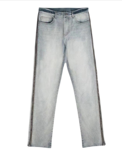 Featuring a unique raw edge design and a stylish side bone zipper, these jeans stand out in any crowd. The versatile straight cut makes them perfect for pairing with a variety of tops, from t-shirts to blouses, ensuring you're always in style.